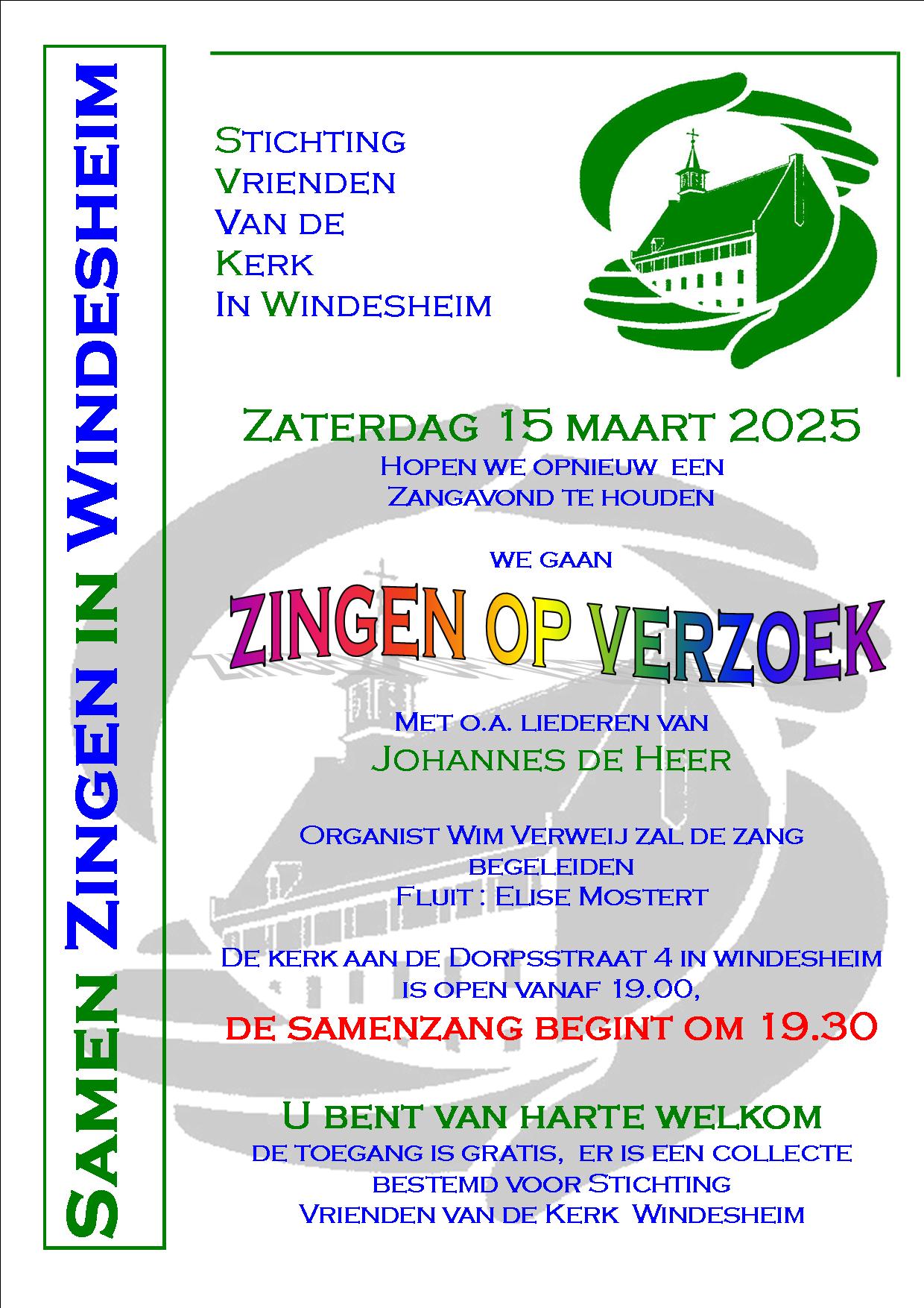 Op zaterdag 15 maart 2025 hopen we opnieuw we een zangavond te houden in de kerk van Windesheim ( Dorpsstraat 4, 8015 PJ)